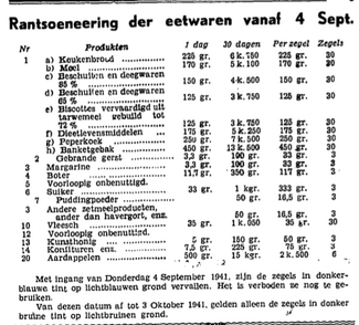 Advertentie : Rantsoenering der eetwaren vanaf 4 sept. [1941]