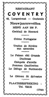 Advertentie : Restaurant Coventry. Langestraat 48, Oostende