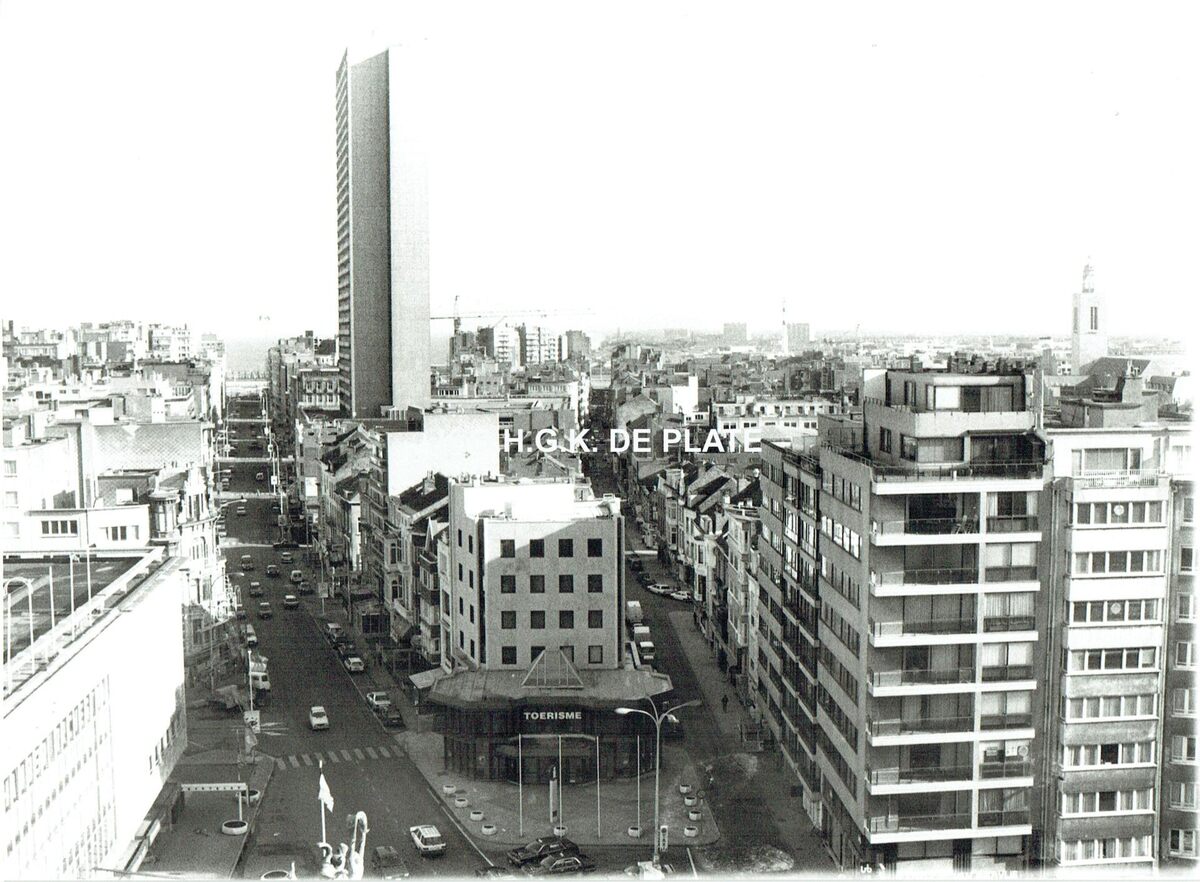 Formaat : 18 x 24 cm. - Vooraan het toerismebureau en iets verderop het Europacentrum. Rechts de toren van het Feest- en Cultuurpaleis en helemaal achteraan vuurtoren Lange Nelle