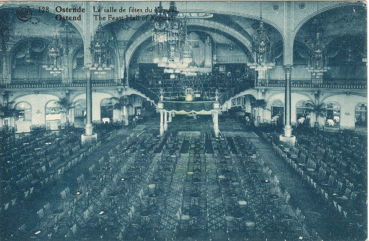 Formaat : 9 x 14 cm. - Albert 128. - Ostende La salle de fêtes du Kursaal - Ostende The feast Hall of Kursaal