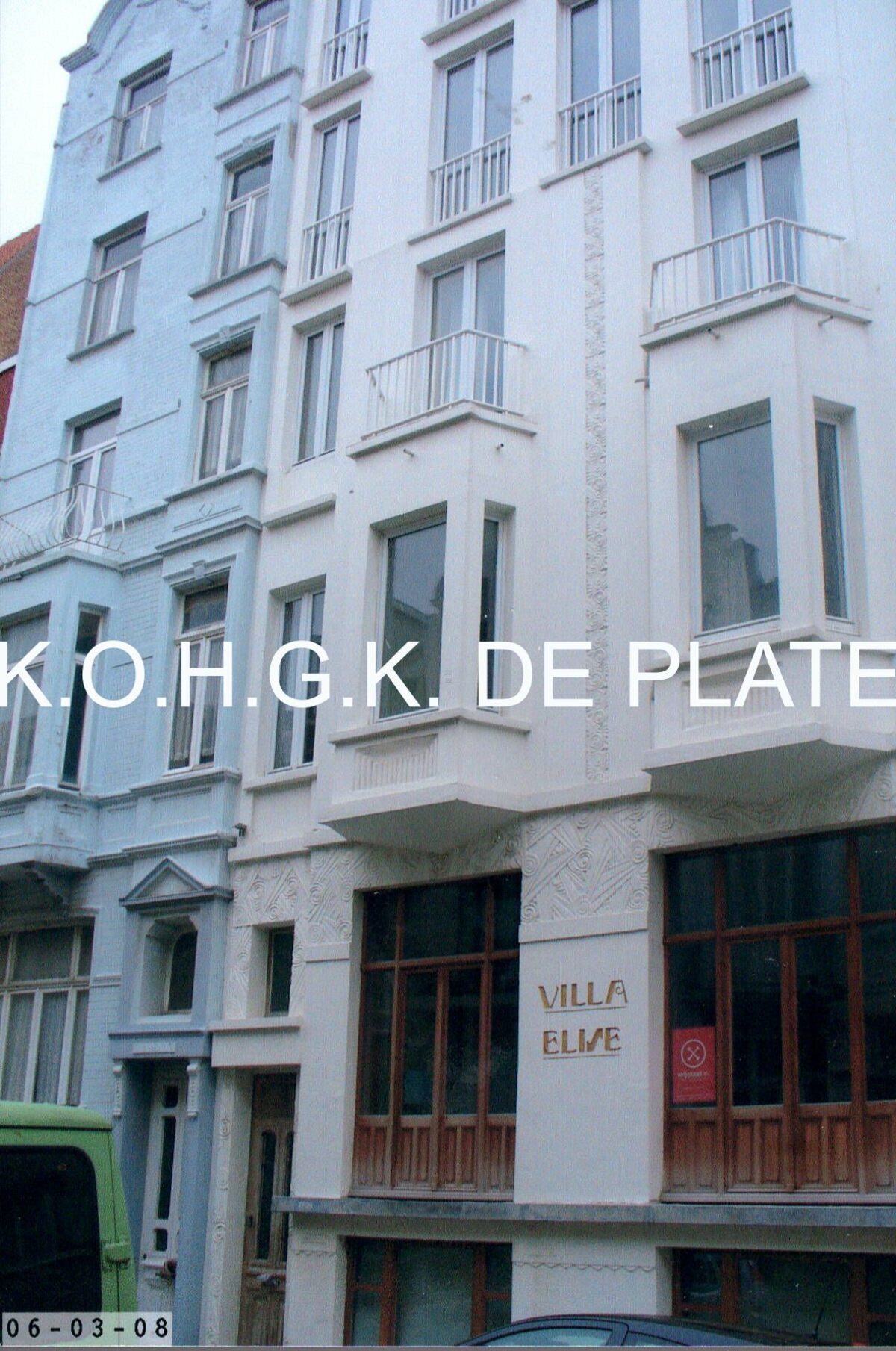 Formaat : 15 x10 cm. - Art-deco appartementsgebouw uit het interbellum. In 1928 werd twee panden omgebouwd tot pension "Villa Elise". Dit gebeurde door de aannemers "Gebroeders De Gryse" (Alfred, Maurits en Henri) naar ontwerp van architect Schaap. Zie twee inscripties op ooghoogte, onder de naam van de villa en rechts van de ingang" (Johan Geuvens)