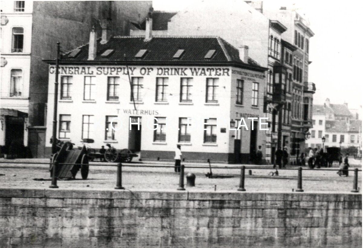 Formaat : 10 x 14 cm. - Gevelopschrift : General supply of drink water. Het gebouw had twee ingangen.