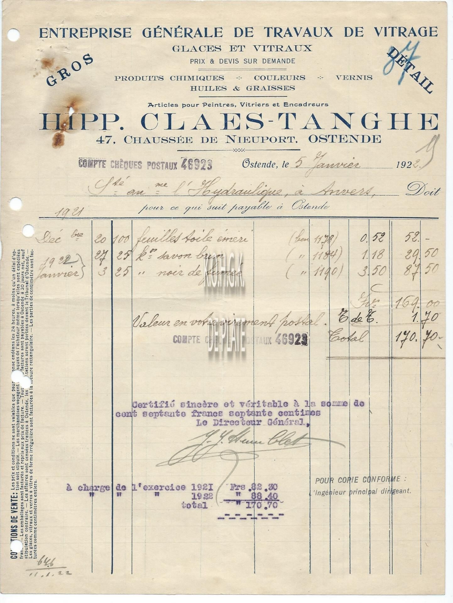 Glaces et Vitraux. - Produits chimiques - Couleurs - Vernis - Huiles et Graises. - Articles pour peintres, vitriers et encadreurs