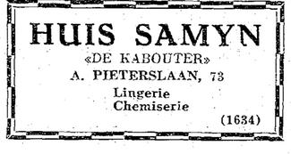 Advertentie : Huis Samyn "De Kabouter". Alfons Pieterslaan 73