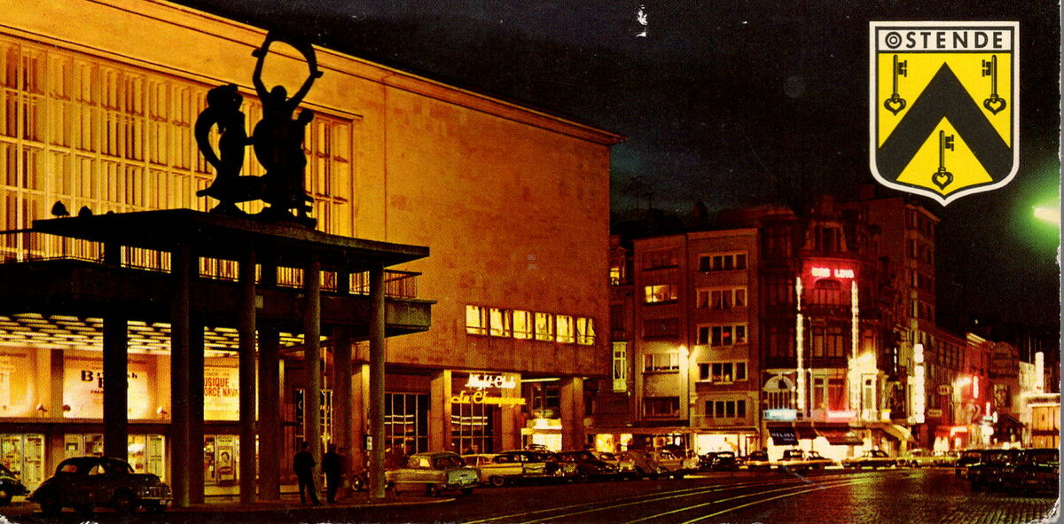Formaat : 7 x 14,5 cm. - Krüger. - OOSTENDE Kursaal bij Nacht ; Le Kursaal la Uit ; Kursaal by Night ; Kurhaus bei Nacht