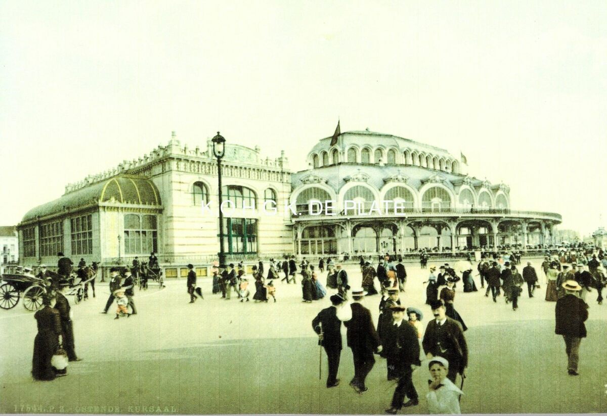 Afdruk. - Formaat : 14 x 21 cm. - Het tweede Kursaal werd gebouwd tussen 1875 en 1878 naar de plannen van de Brusselse architect Naert. Het werd ingehuldigd op 22 juni, aanwezigheid van Z.M. Koning Keopld II.
