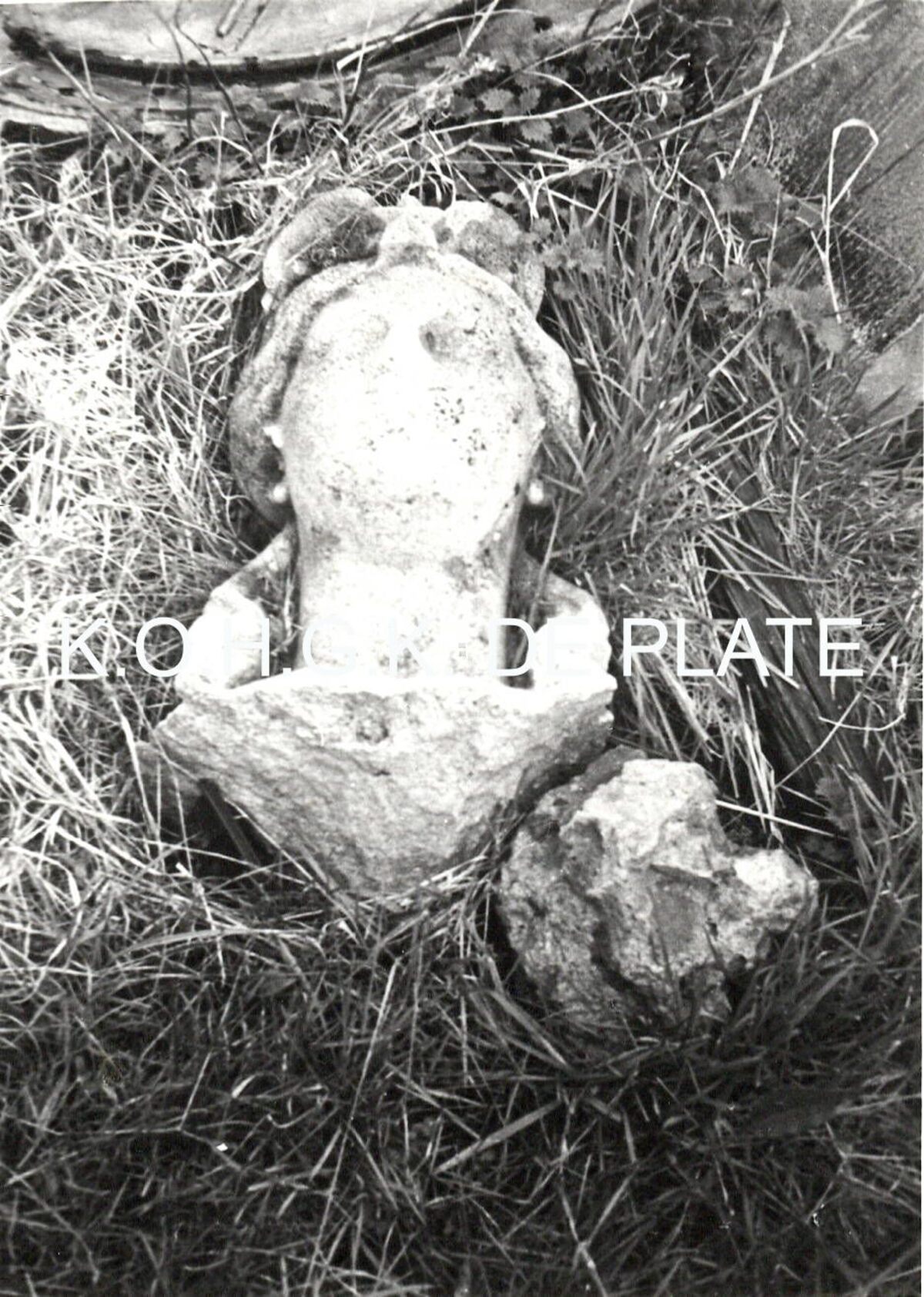 Formaat : 12 x 8 cm. - Deze beelden stonden tot 1944 op de gevel van het toenmalige postgebouw en kregen in 1984 een plaats in de middenberm van de Koninginnelaan