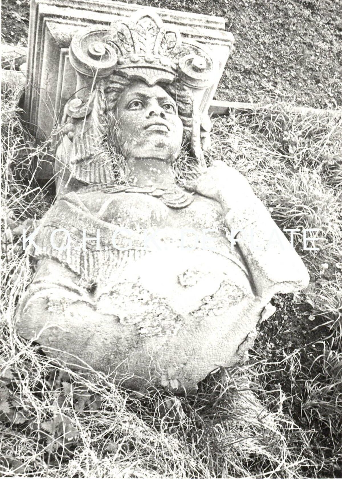 Formaat : 12 x 8 cm. - Deze twee, 3 meter hoge, Kariatiden sierden de ramen van het gelijkvloers van het Grand Hotel de Bruxelles & New Claridge, de vroegere Villa Doris. Zij werden gemaakt door de Brugse beeldhouwer Hendrik Pickery (1828-1894) en verbeelden twee brazilaanse meisjes die op het hoofd de last van de voorgevel torsen. In 1988 werden de twee beelden teruggevonden en door de Stedelijke Diensten gerestaureerd. Zij staan thans in het Maria-Hendrikapark aan de voet van de oude watertoren