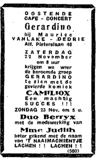 Advertentie : Cafe Concert Gerardino. Alfons Pieterslaan 46, Oostende