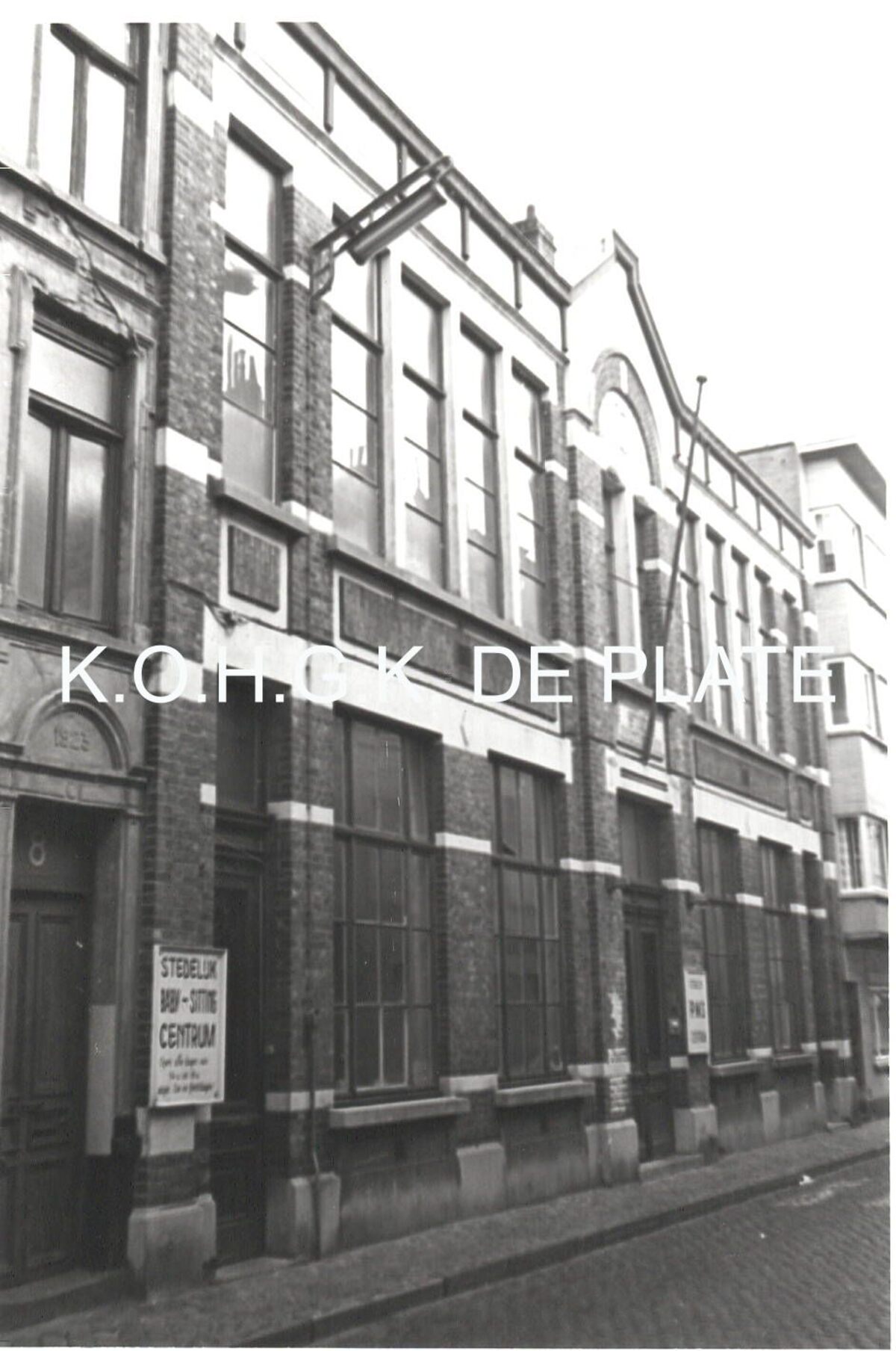 Formaat :12 x 8 cm. - Op een bord naast de ingang staat : Stedelijk baby-sitting centrum.