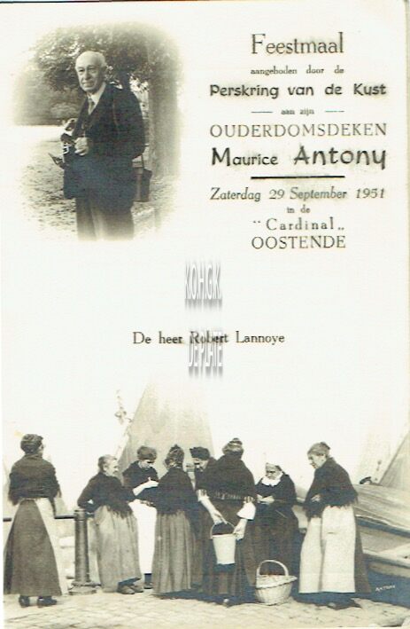 Feestmaal aangeboden door de Perskring van de Kust aan zijn Ouderdomsdeken Maurice Antony op zaterdag 29 september 1951 in de "Cardinal"