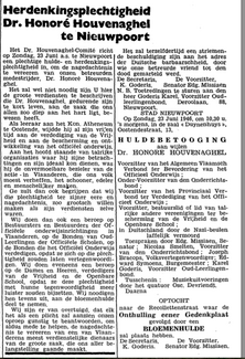 Herdenkingsplechtigheid Dr. Honoré Houvenaghel te Nieuwpoort