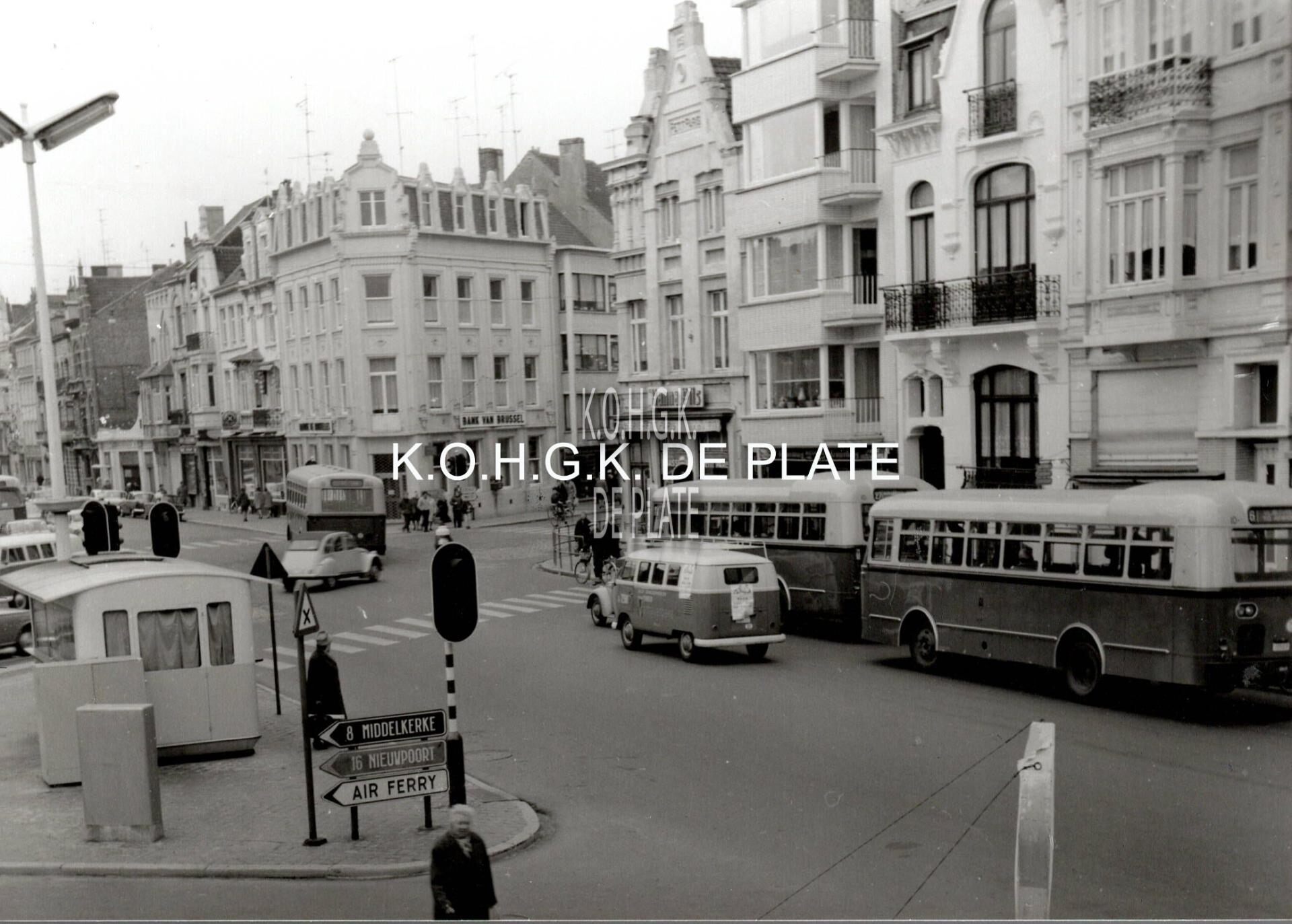 Formaat : 12,5 x 18 cm. - Kruispunt Petit Paris, op de foto de Torhoutsesteenweg met rechts de Alfons Pieterslaan. Links een frietkot op het plein
