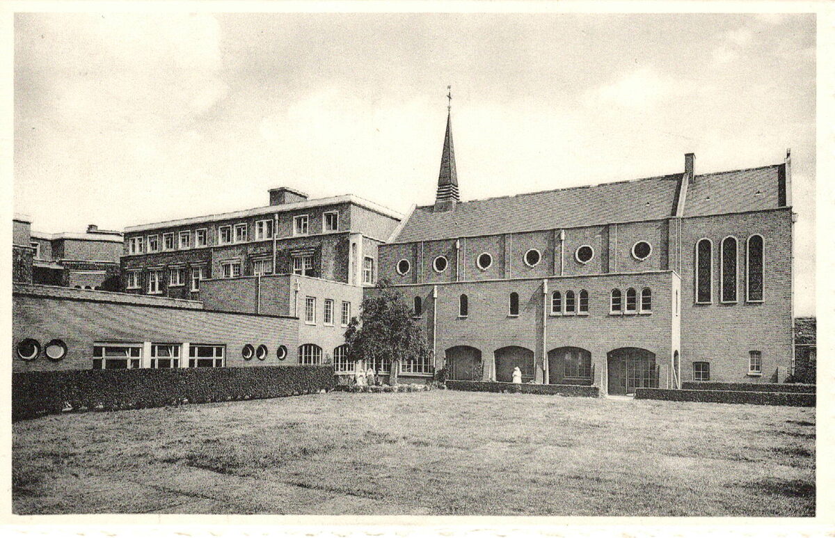 Formaat : 9 x 14 cm. - Nels. - H. Hart Kliniek, Oostende. Zicht uit den hof.