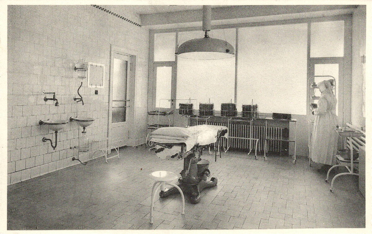 Formaat : 9 x 14 cm. - Nels. - H. Hart Kliniek, Oostende. Grote operatiezaal.