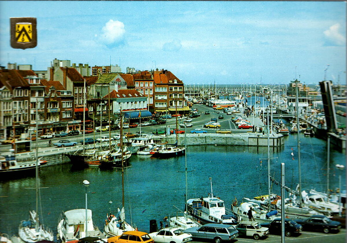 J.V.D.B., N° 102/58. - Oostende - Zicht op jachthaven en sluis. - Pleziervaartuigen en zeiljachten in de Mercator jachthaven of eerste handesldok. De brug is open van de Mercatorsluis, die de verbinding is met het Montgomerydok. Links, de Vindictivelaan en wat verder de Visserskaai