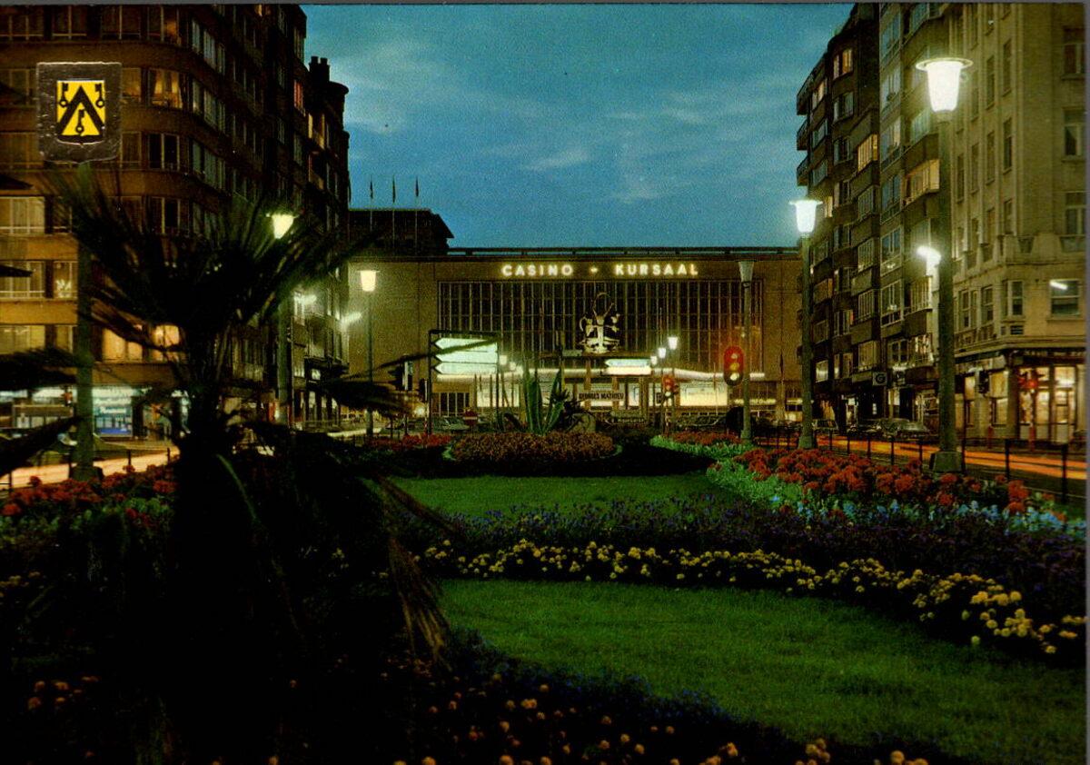 J.V.D.B., N° 102/60. - Oostende - "Leopoldlaan" bij nacht. - De Leopold II-laan gezien richting de hoofdingang van het Kursaal.