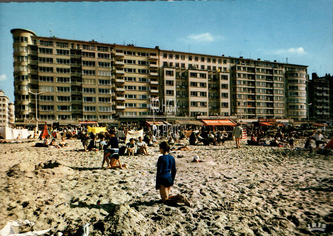 Nels + Edit. Anciens Ets Ern Thill, S.A., Bruxelles, Mexichrome France, N° C 47. - Oostende - Albert I Wandeling. - Strandrecreatie op het Groot Strand. De appartementen langs de Albert I-promenade, gezien vanaf de Kursaal (links).