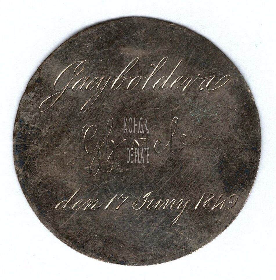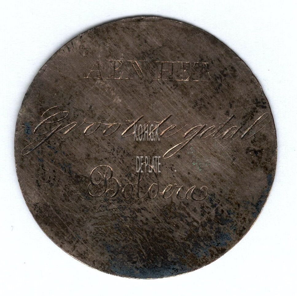 De prijspenning is rond met gladde rand , en is als volgt ingegraveerd