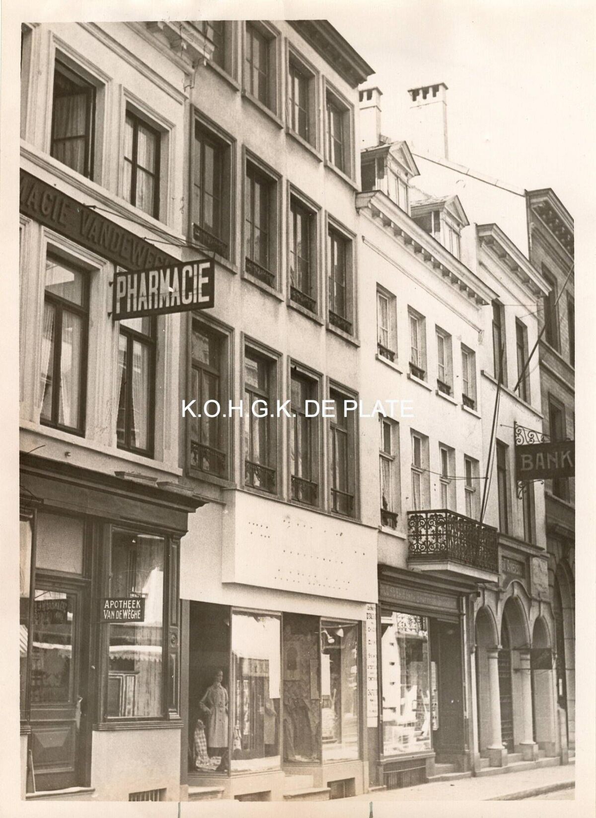 Formaat : 18 x 13 cm. - Gedeelte tussen de Jozef II-straat en de Sint-Paulusstraat. Nr. 85 : apotheek Van De Weghe ; nr. 83 : kledingzaak Busato ; nr. 81 : ?
