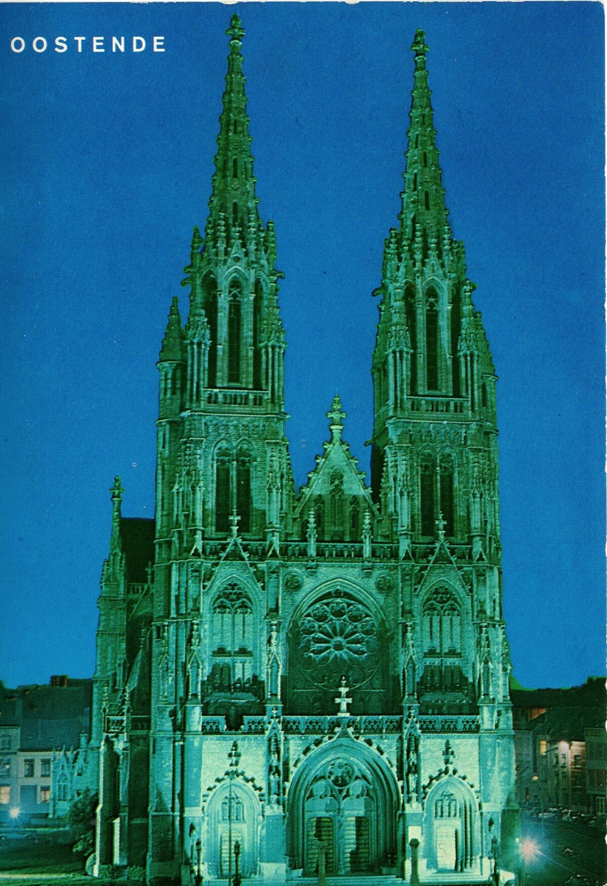 Van Mieghem A., N° 50. - Oostende - St. Petrus en Paulus Kathedraal bij nacht. Cathédrale St. Pierre et Paul la nuit.