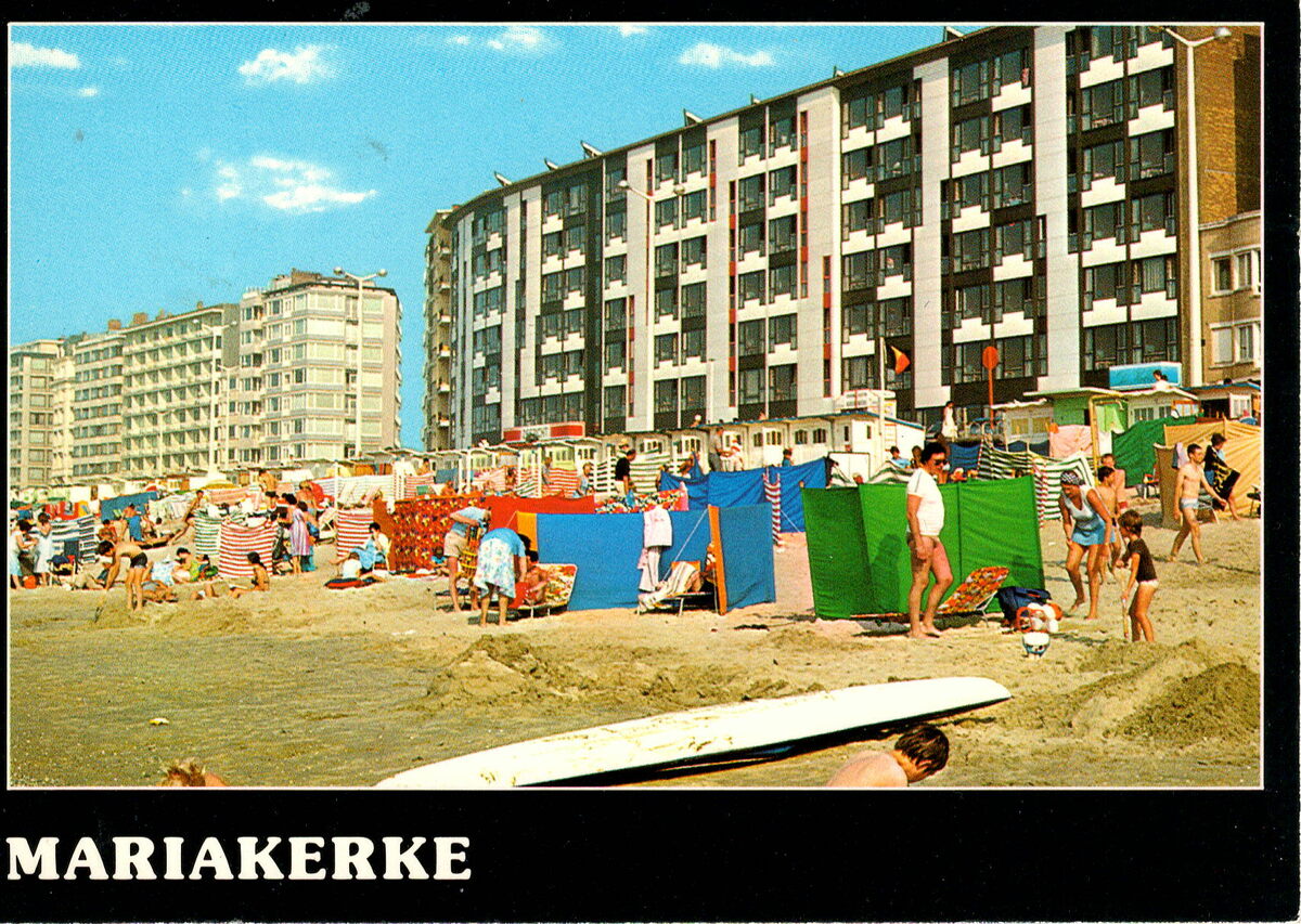 AVM, N° A 182. - Oostende - Mariakerke - Vakantiecentrum Zeezicht. Centre de Vacances Zeezicht. - Strandrecreatie op het strand van Mariakerke. Het vakantiecentrum "Zeezicht" langs de Zeedijk