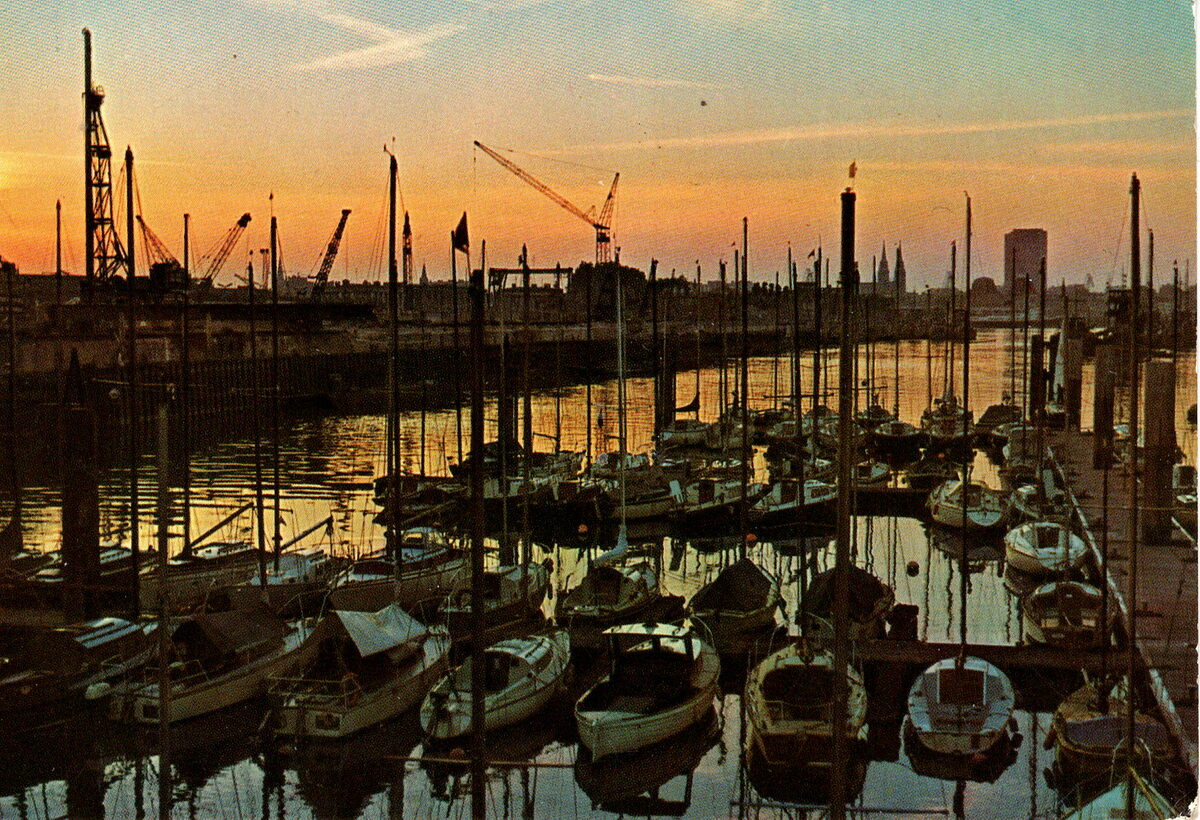 JVDB, N° ZN/9. - De Belgische Kust - Yachthaven bij valavond te Oostende. La Côte Belge - Crépuscule sur le yachtclub à Ostende. - De jachthaven van de RYCO (Royal Yachtclub Oostende) in de achterhaven van Oostende. Rechts, is het clubhuis