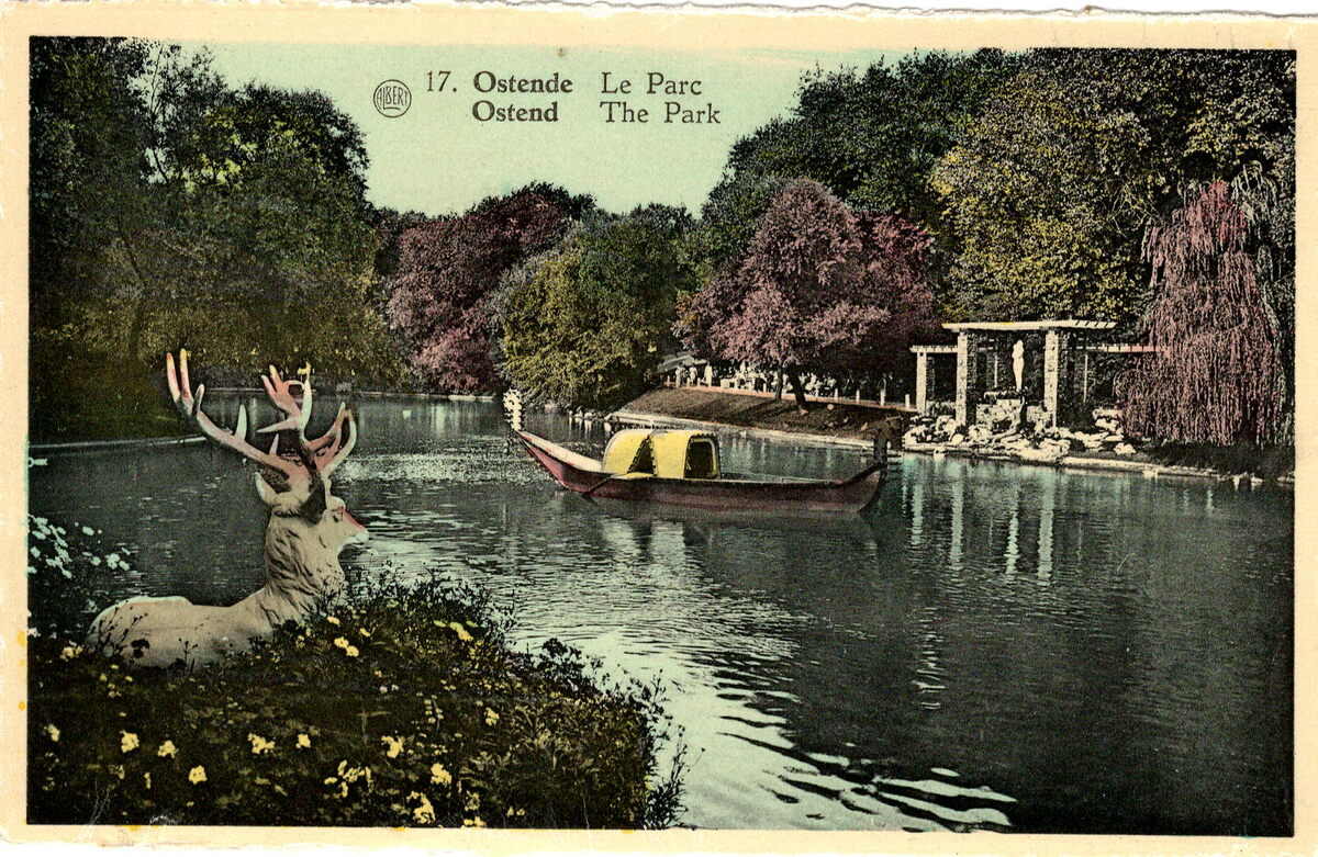 Albert, N° 17. - Ostende - Le Parc. Ostend - The Park. - Bijgekleurde kaart