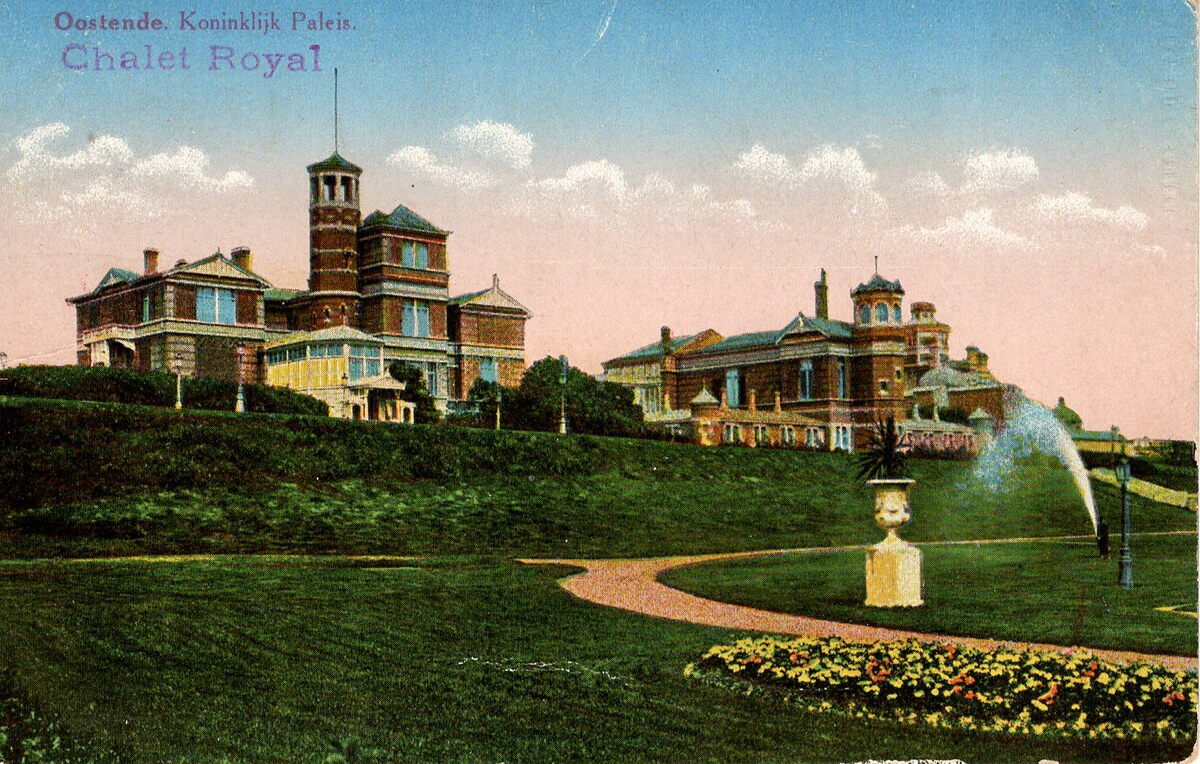 DORM, Sér. 2 10. - Oostende - Koninklijk Paleis (sic). - Bijgekleurde kaart. - De zuidkant van het Koninklijk Chalet en tuin