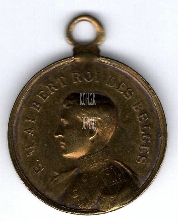 Op de voorzijde : Het borstbeeld van koning Albert I in militair uniform naar links gericht, rondom boven S.M. ALBERT ROI DES BELGES