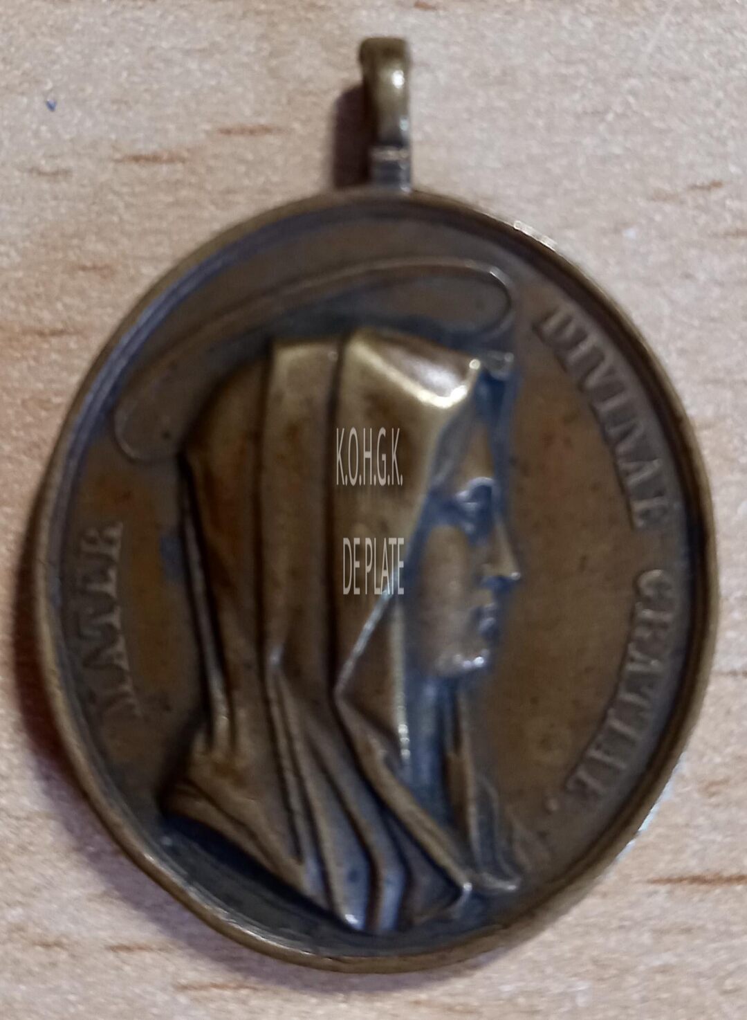 Op de voorzijde : rondom links MATER, rondom rechts DIVINAE GRATIAE, centraal het borstbeeld van de Maagd Maria met sluier en aureool naar rechts gericht