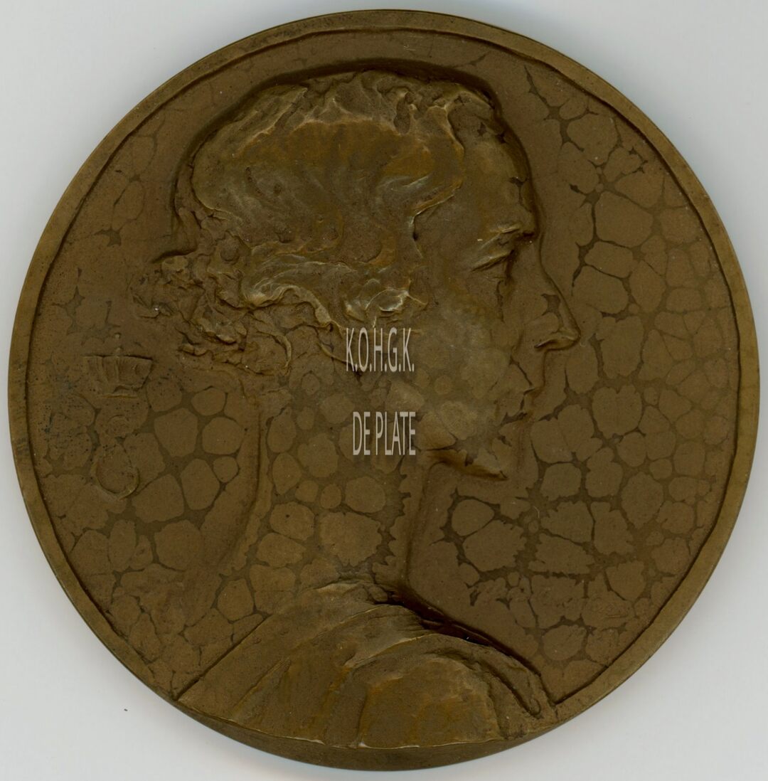 De gedenkpenning is rond van vorm met gladde rand, en is als volgt ingegraveerd