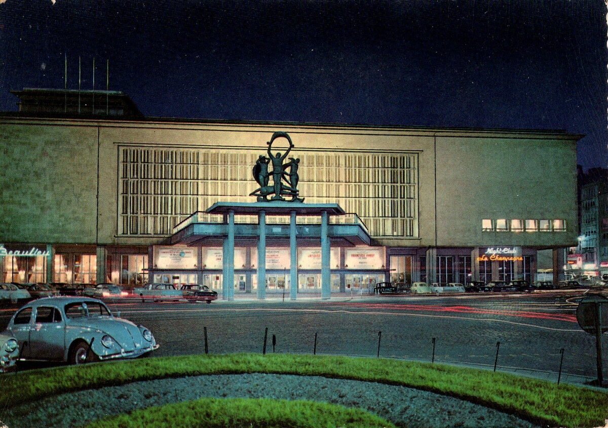 Edition L'Heembeekoise-Bruxelles, N° 32. - Oostende - Kursaal. Ostende - Casino. Ostend - Kursaal. - De hoofdingang van de kursaal gelegen langs de Van Iseghemlaan. Rechts, de ingang naar de Night Club "La Champange" en links de Bodega "Beaulieu". Vooraan, een Volkswagen Kever