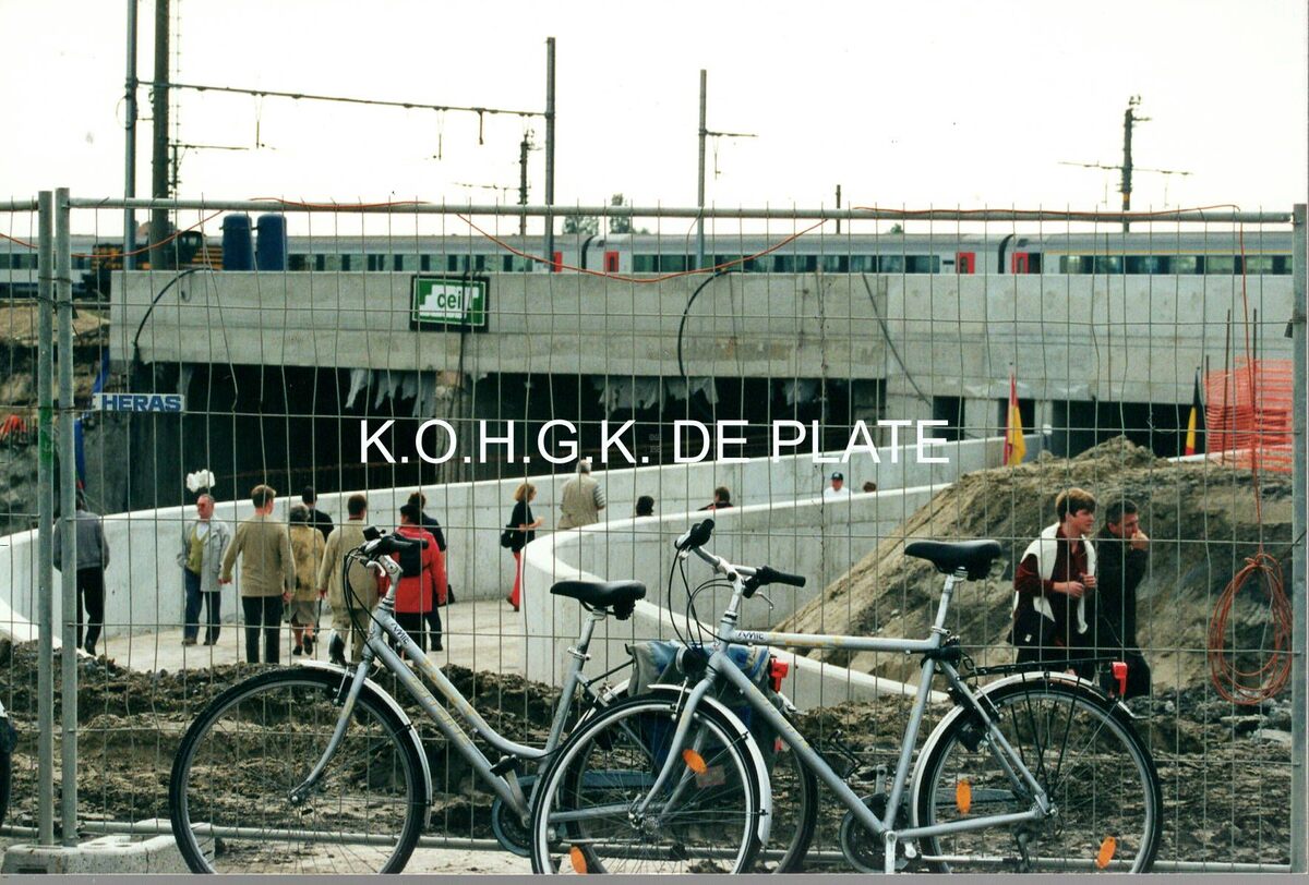 Het fiets- en voetpad en de autotunnels onder de spoorwegbrug