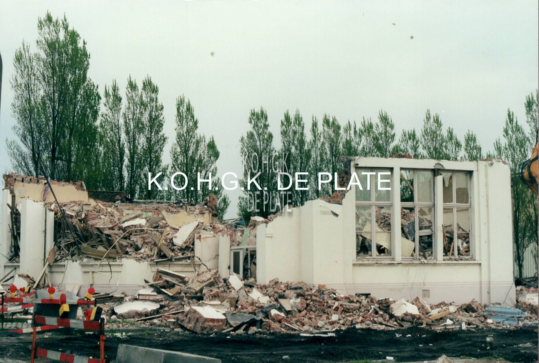 Formaat : 10 x 15 cm. - Het gebouw stond op de hoek van de Tweebruggenstraat en werd afgebroken voor de aanleg van het laatste gedeelte van de R31 (Ringlaan)