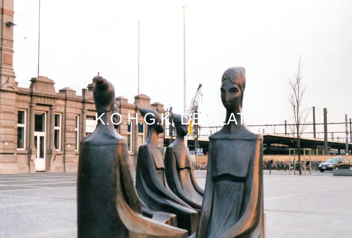 Formaat : 10 x 15 cm. - De beeldengroep "De Vissersvrouwen" van August Michiels op het Stationsplein