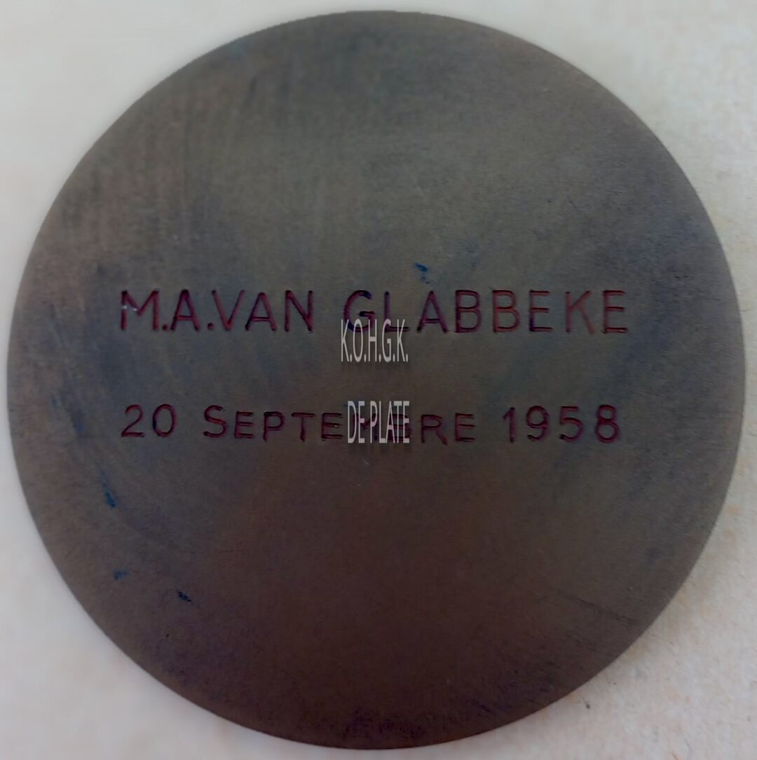 Op de keerzijde : centraal horizontaal M.A.VAN GLABBEKE / 20 SEPTEMBRE 1958
