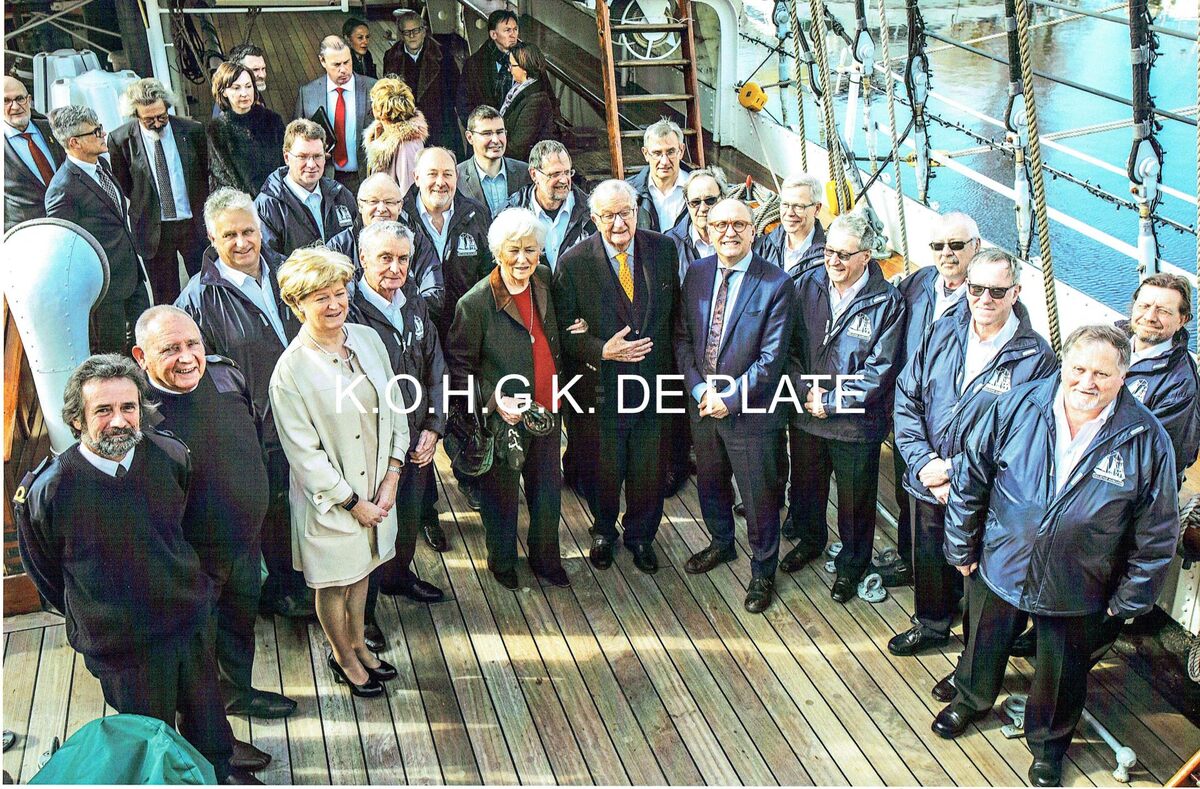 Formaat : 18 x 24 cm. - De koninklijke familie op de foto met de vrijwilligers van de Mercator en een grote delegatie prominenten ter gelegenheid van tentoonstelling VLOT. Er waren twee werken van Fabre aan boord van de Mercator