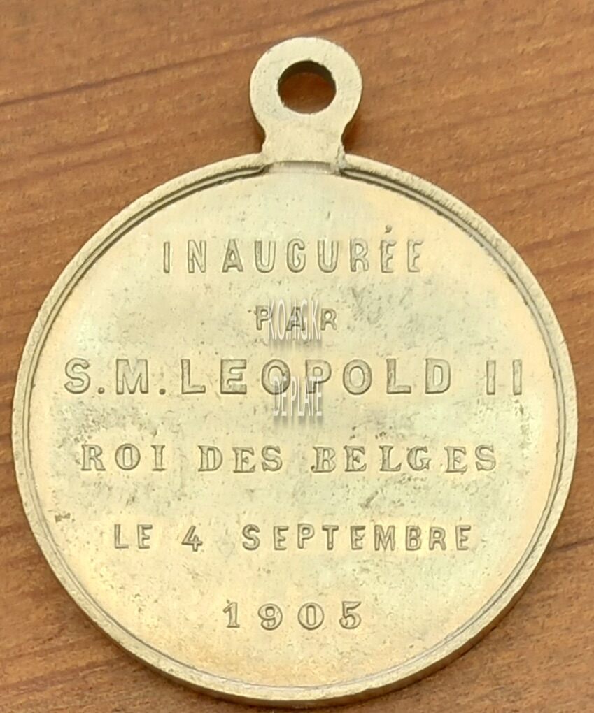 Op de keerzijde : horizontaal INAUGUREE / PAR / S.M. LEOPOLD II / ROI DES BELGE / LE 4 SEPTEMBRE / 1905