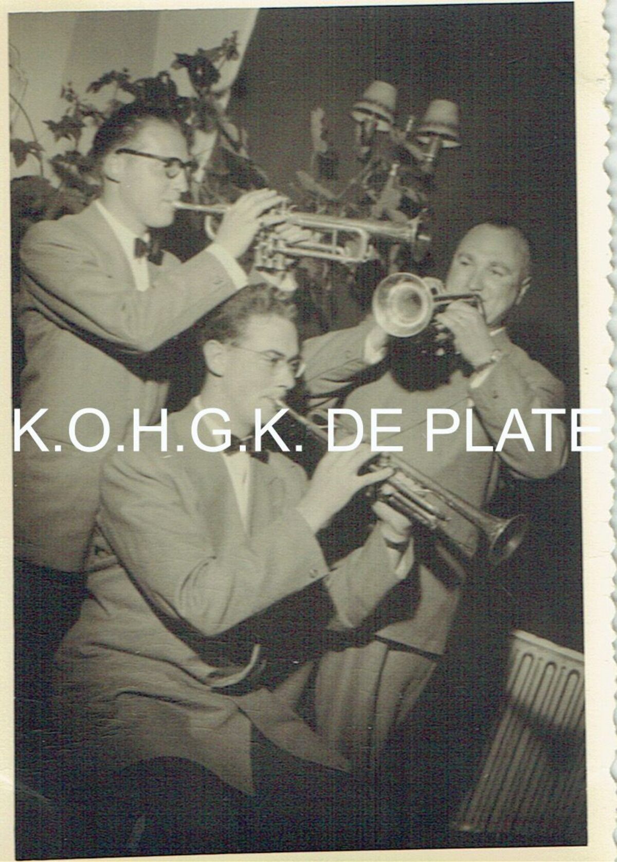 Formaat : 10 x 6 cm. - Het trompettrio Marcel Declercq, Alfons Loncke en Amand Lauwers