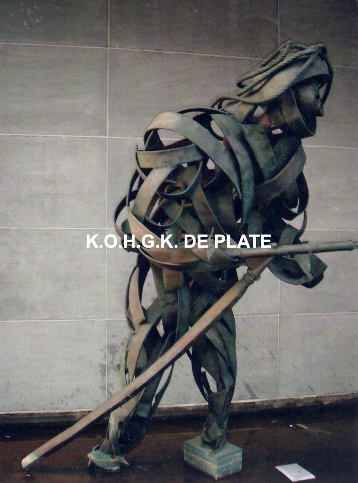 Formaat : 13,5 x10 cm. - Het beeld staat in de ingang van de brandweerkazerne