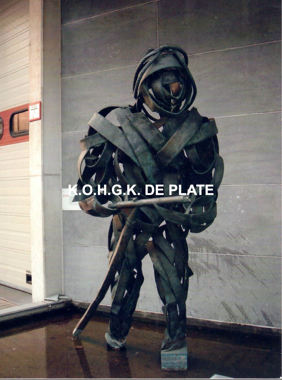 Formaat : 13,5 x10 cm. - Het beeld staat in de ingang van de brandweerkazerne