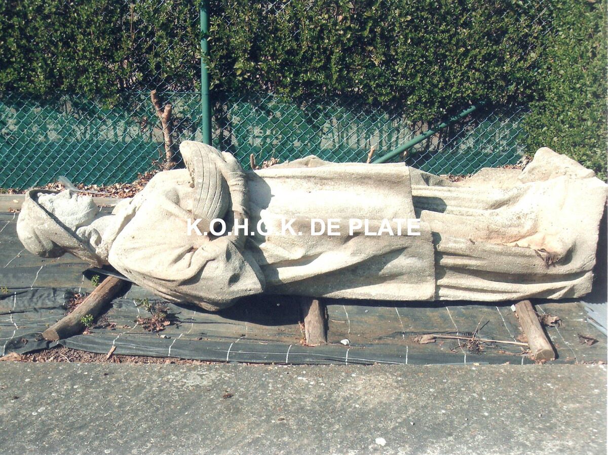 Formaat : 10 x 13,5 cm. - Dit is één van de vier overgebleven beelden die op het oude postgebouw stonden. "Zeevaart" is het eerste beeld dat je tegenkomt in de middenberm van de Koninginnelaan richting Maria-Hendrikapark. Het beeld werd gemaakt door beeldhouwer Jules Lagae. Op de foto zien we dat het beeld nog moet worden geplaatst.