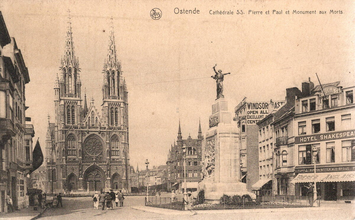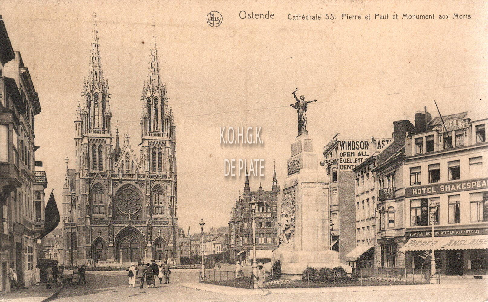 Nels. - Ern. Thill, Bruxelles. - Ostende Cathédrale SS. Pierre et Paul et Monuments aux Morts