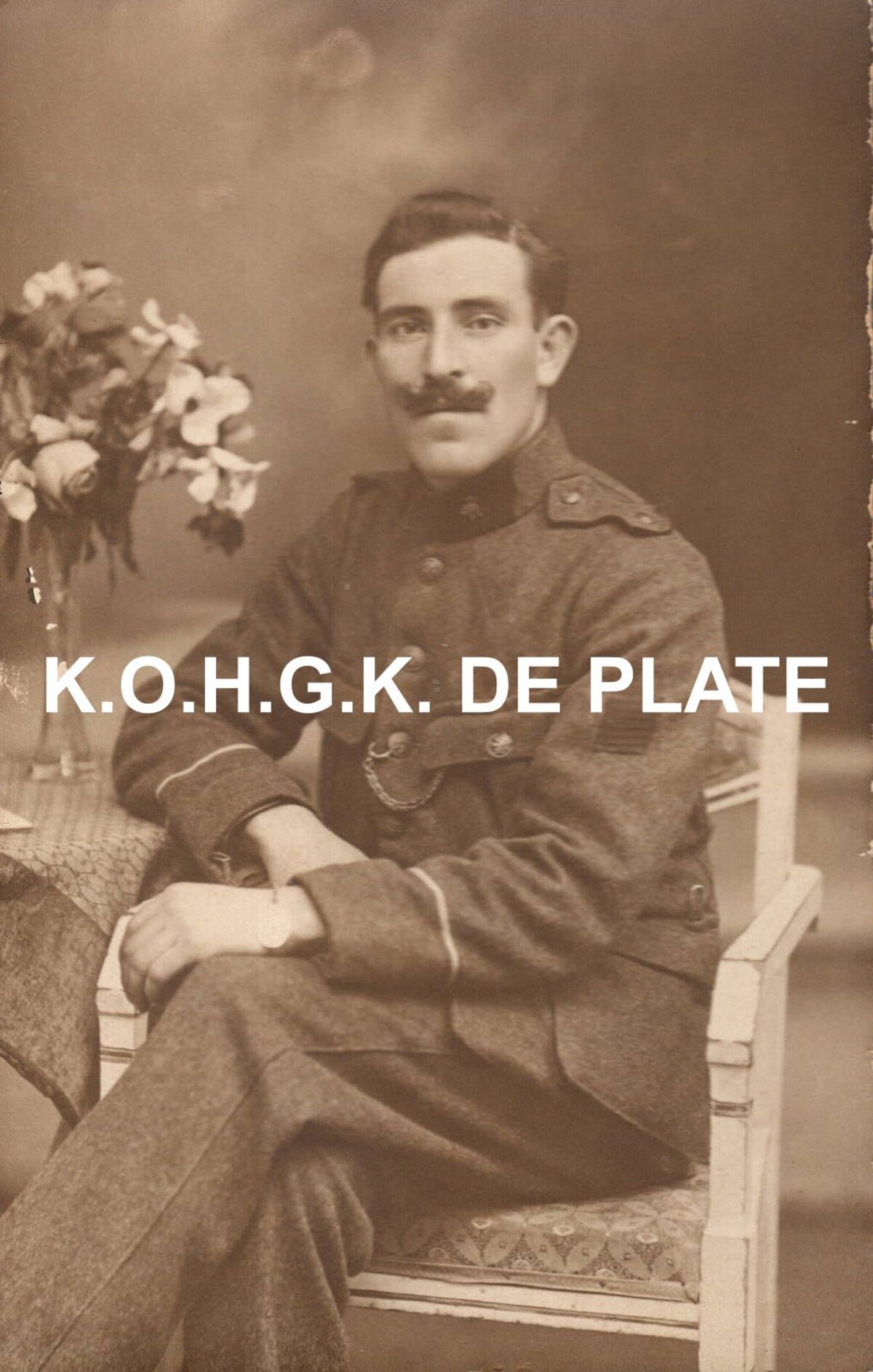 Formaat : 14 x 9 cm. Camiel in soldatenuniform vóór zijn vertrek naar het front