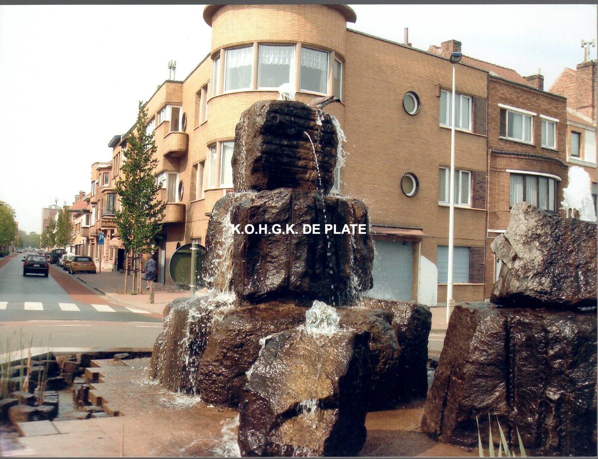 Formaat : 10 x 15 cm. - Leffingestraat rechtdoor, rechts Frère Orbanstraat met vooraan een fontein op het rondpunt.