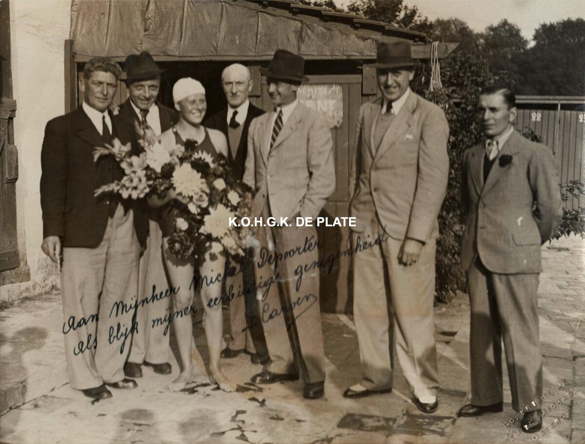 Formaat : 18 x 24 cm. - "Aan Michel Depoorter als blijk mijner eerbiedige genegenheid". Gesigneerd door Fernande Caroen zelf.