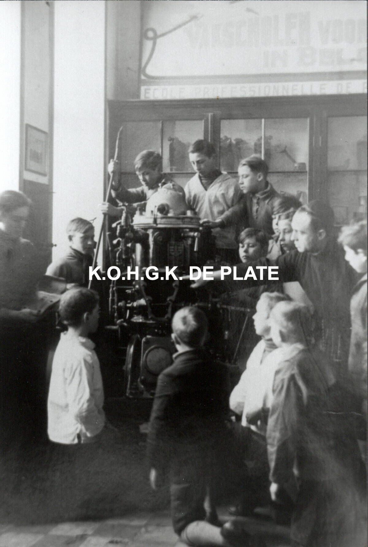 Formaat : 10 x 14,5 cm. - De school vóór de Tweede Wereldoorlog. Les over scheepsmotoren