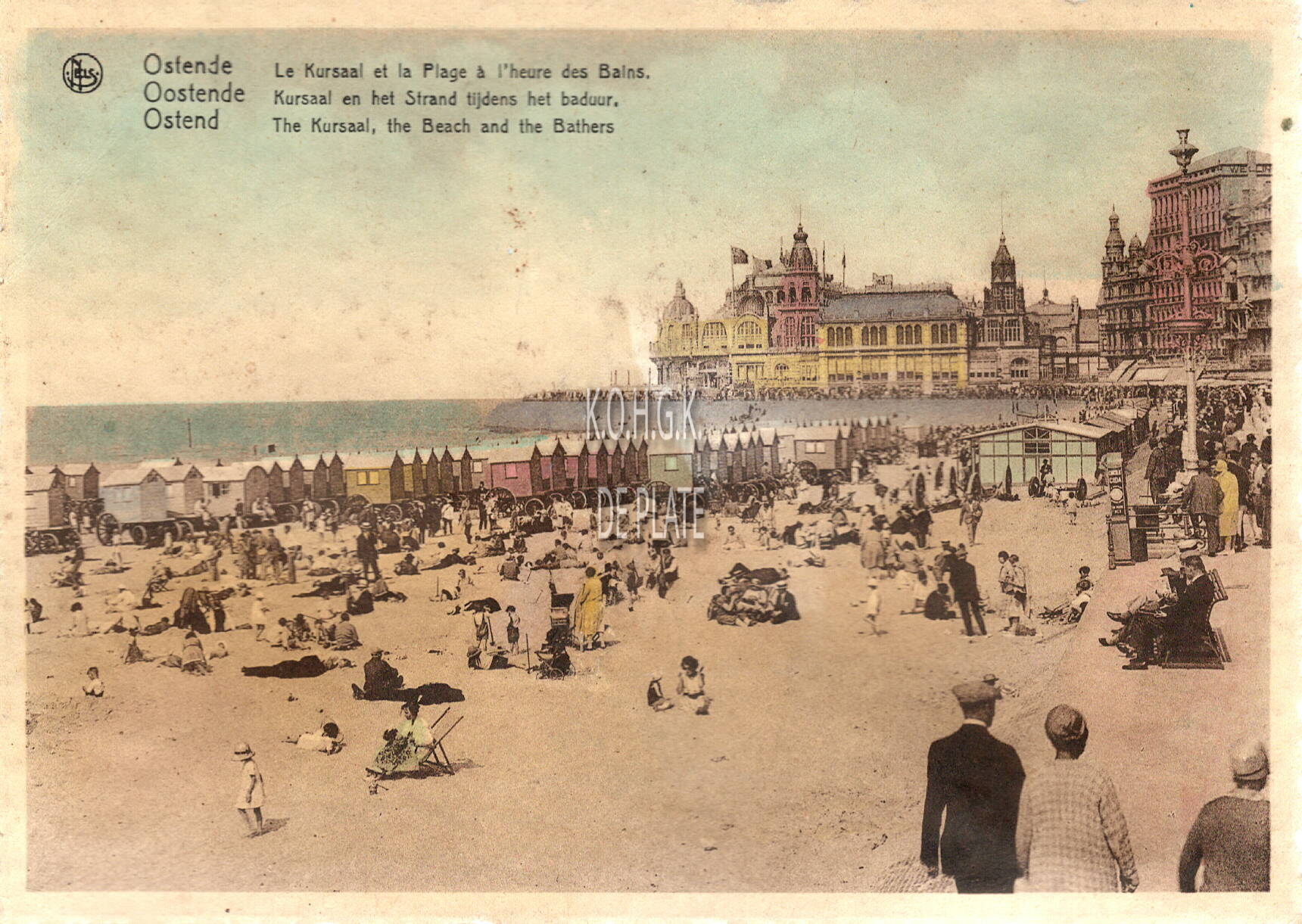 Nels, Librairie Internationale - Ostende - Middelkerke - Coq s/mer - Wenduyne s/mer - Blankenberghe- Mariakerke-Bains.- Ostende Le Kursaal et la Plage à l'heuredes Bains - Oostende Kursaal en het Strand tijdens het baduur - Ostend The Kursaal, the Beach an the Bathers