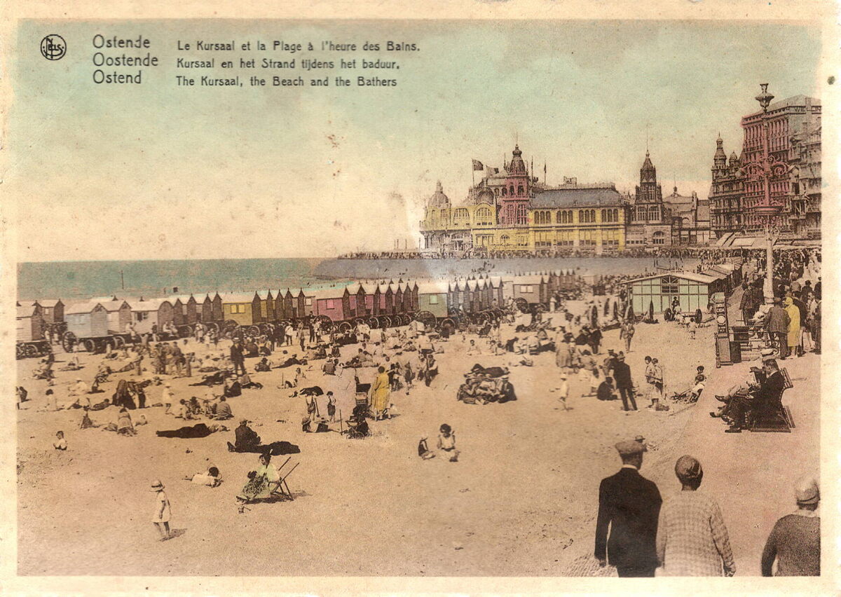 Nels, Librairie Internationale - Ostende - Middelkerke - Coq s/mer - Wenduyne s/mer - Blankenberghe- Mariakerke-Bains.- Ostende Le Kursaal et la Plage à l'heuredes Bains - Oostende Kursaal en het Strand tijdens het baduur - Ostend The Kursaal, the Beach an the Bathers